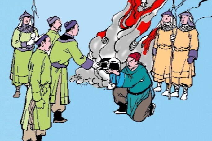 Thượng hoàng cười bảo con trai cả: Thế ra con coi ngôi vua với cái áo này cũng chẳng hơn kém gì nhau ư? Rồi ngài khen ngợi Quốc Khang và ban cho cái áo.